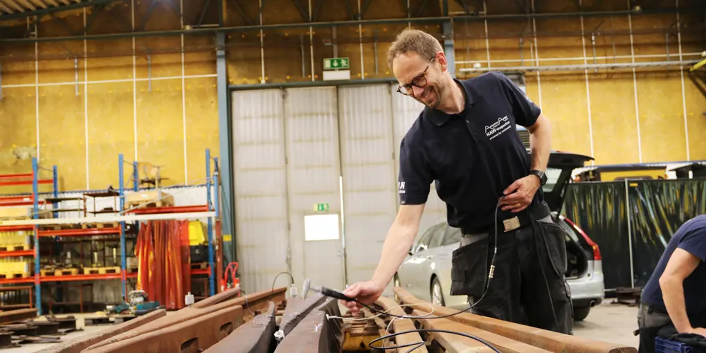 Med NAW-teknik kan flera olika fel inom samma område snabbt identifieras i komplexa geometrier och kanske även på långa räler. Företaget Acoustic Agree har testat sin NAW-teknik i spårsvetshallen på Trafikverksskolan.