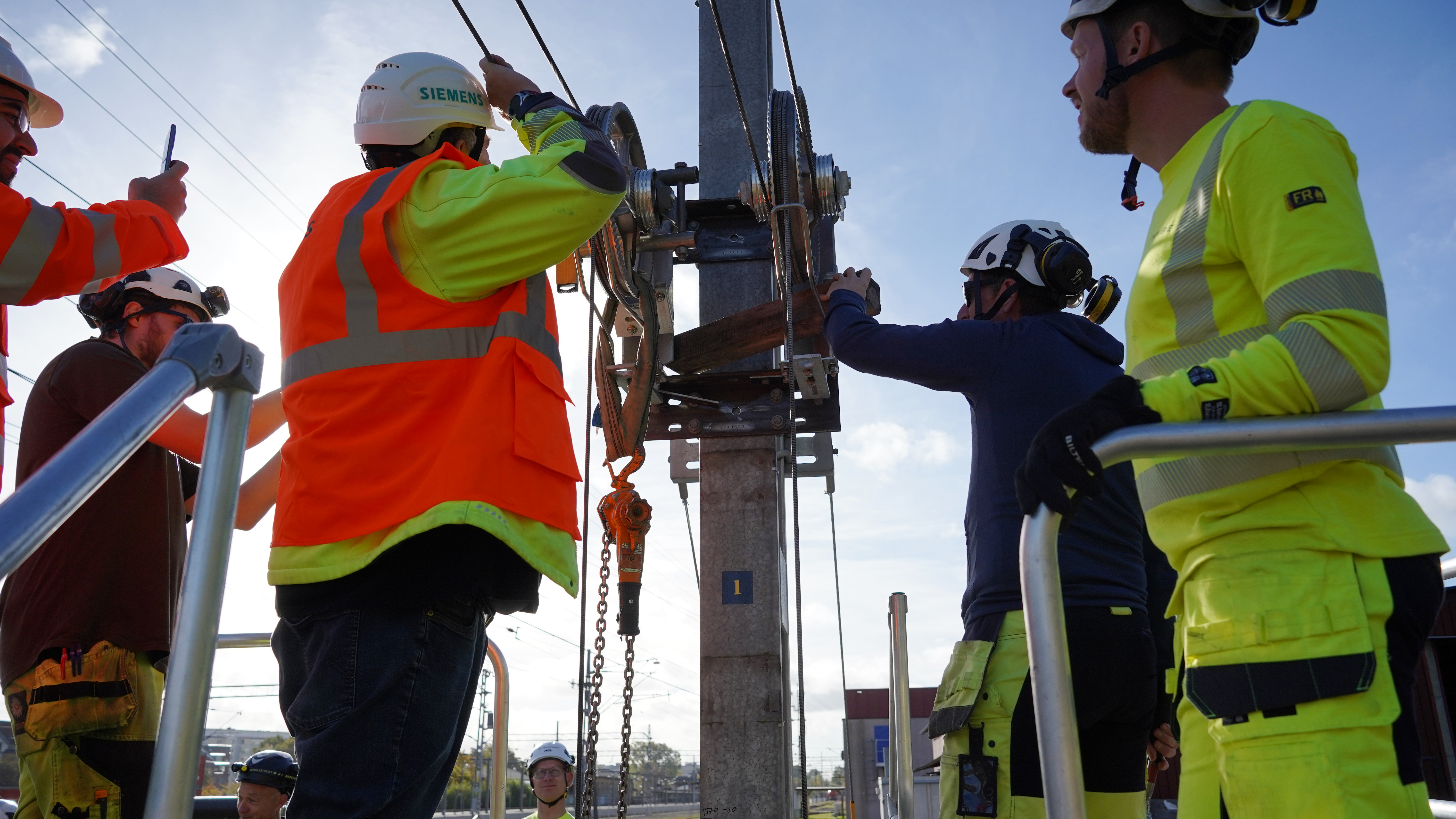 Trafikverket har genomfört praktiska tester för framtidens kontaktledningssystem för höghastighetsjärnväg, det så kallade SYT 21/27 i Trafikverksskolans järnvägspark.